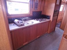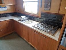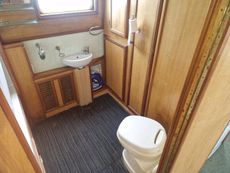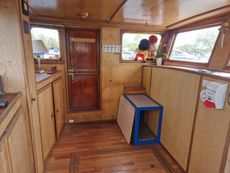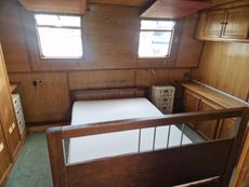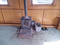 The whole boat has a feeling of space and light, with main cabin internal height of around 6ft8ins. Heating is via the solid fuel stove and a diesel heater.