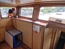 Entering the boat into what would be described as a wheel house, we find a separate social area or excellent storage area, including a large amount of underfloor storage.